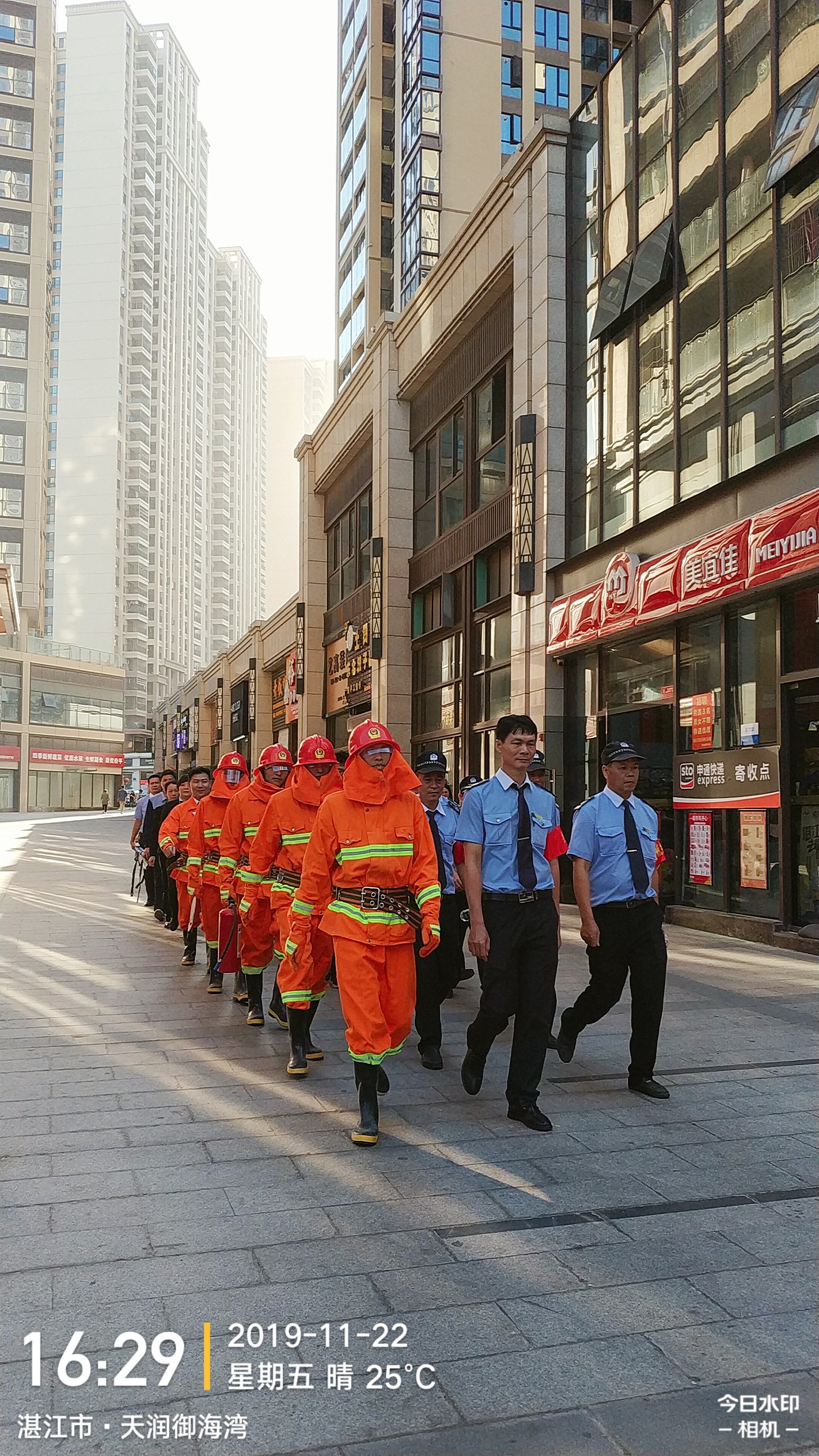 火災(zāi)撲滅,小區(qū)義務(wù)消防隊成員列隊返回。整齊的隊伍,良好的精神面貌,展現(xiàn)成員們別具一格的風(fēng)采,體現(xiàn)澤潤物業(yè)團隊為目標(biāo)奮勇前進的凝聚力量。