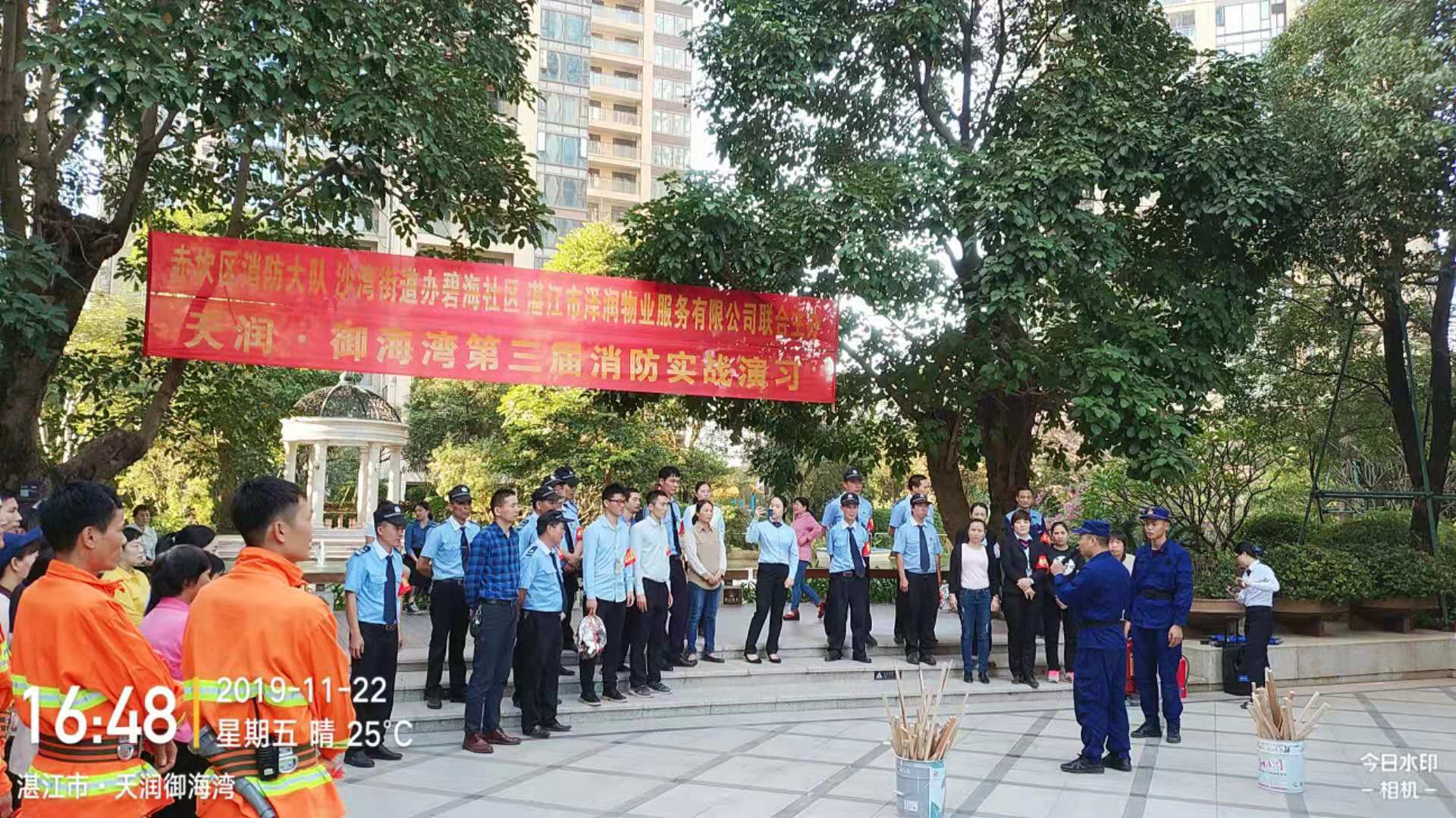 2019年11月22日,澤潤物業(yè)與赤坎區(qū)消防大隊、沙灣街道辦聯(lián)合舉辦御海灣第三屆消防實戰(zhàn)演習(xí),集團公司領(lǐng)導(dǎo)、地產(chǎn)公司領(lǐng)導(dǎo)參與及指導(dǎo)本次演習(xí)工作。
