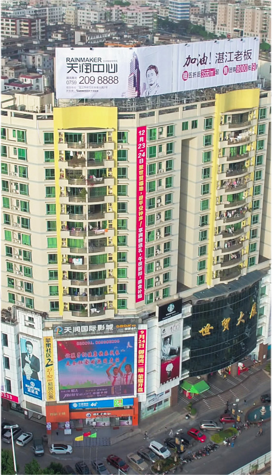 世貿(mào)大廈作為湛江市政府重點工程項目和城市標志性建筑,是當時粵西地區(qū)規(guī)模最大、品牌最多、功能最全、硬件最好的現(xiàn)代化購物中心,創(chuàng)造了又一個粵西之最。